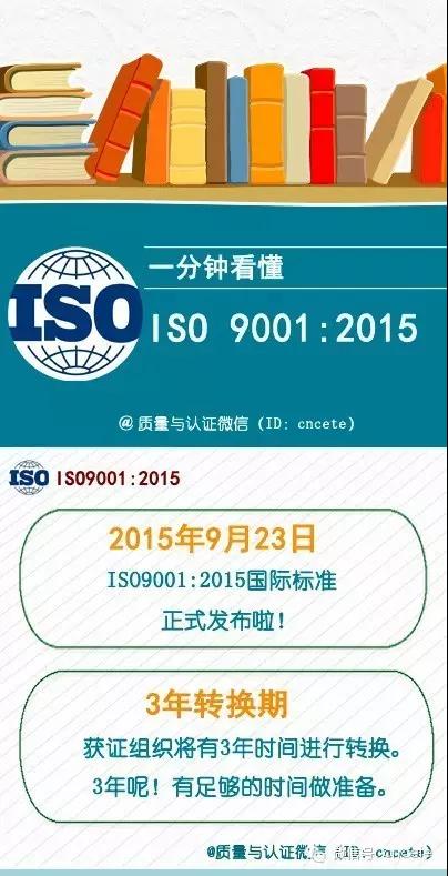 9月15日,新版標準ISO 9001轉(zhuǎn)換截止,ISO 9001:2008認證證書將自動作廢,完成使命退出歷史舞臺(詳情點擊:ISO 9001:2008證書自動失效  內(nèi)含大量干貨)。在新版標準發(fā)布不久,蘇州iso9001認證公司曾做一個簡單的圖解,供各位同仁參考。長假期間,我們一起來回顧一下。